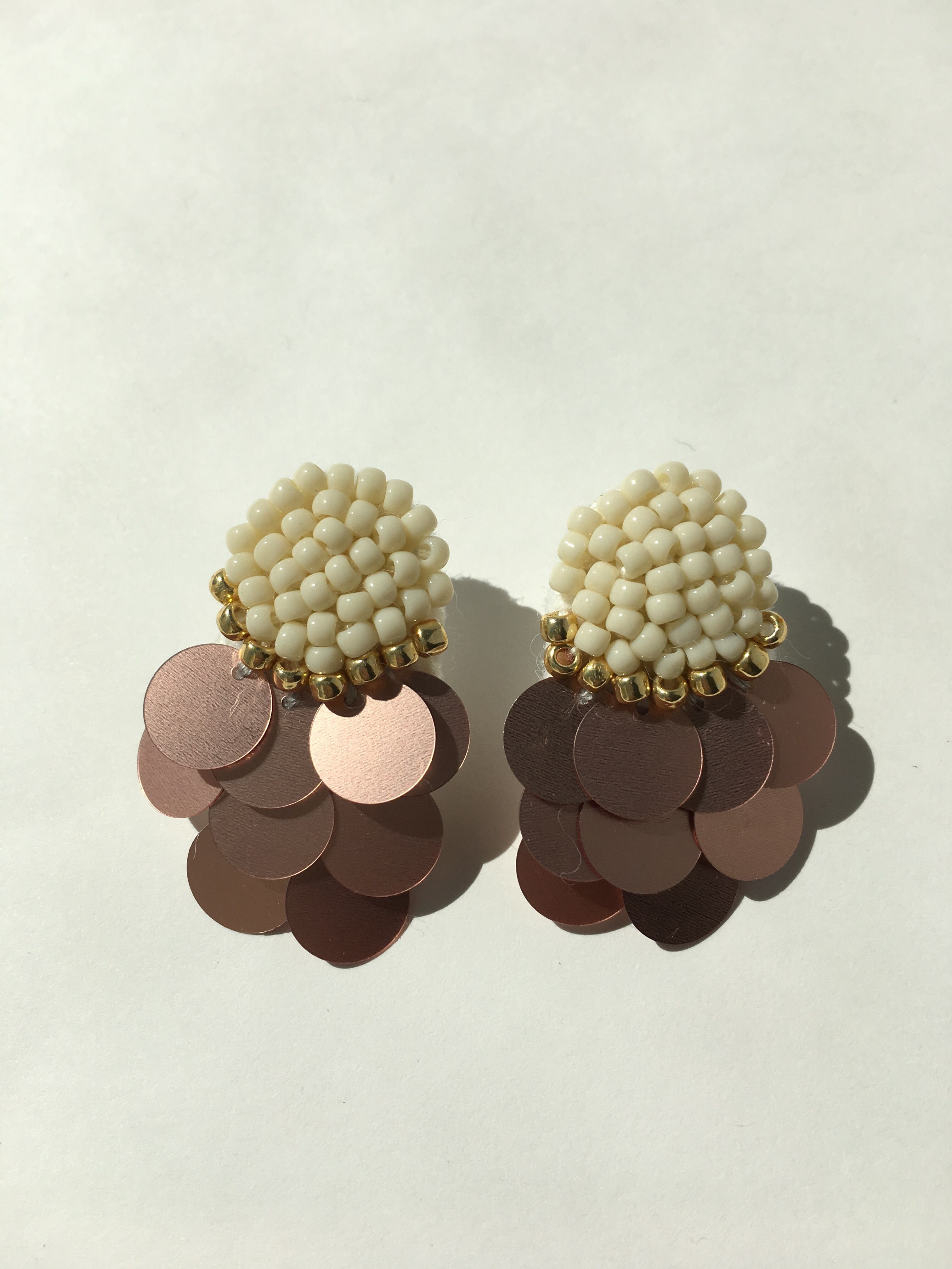 ビーズとスパンコールを使ったハンドメイドのピアスです♪