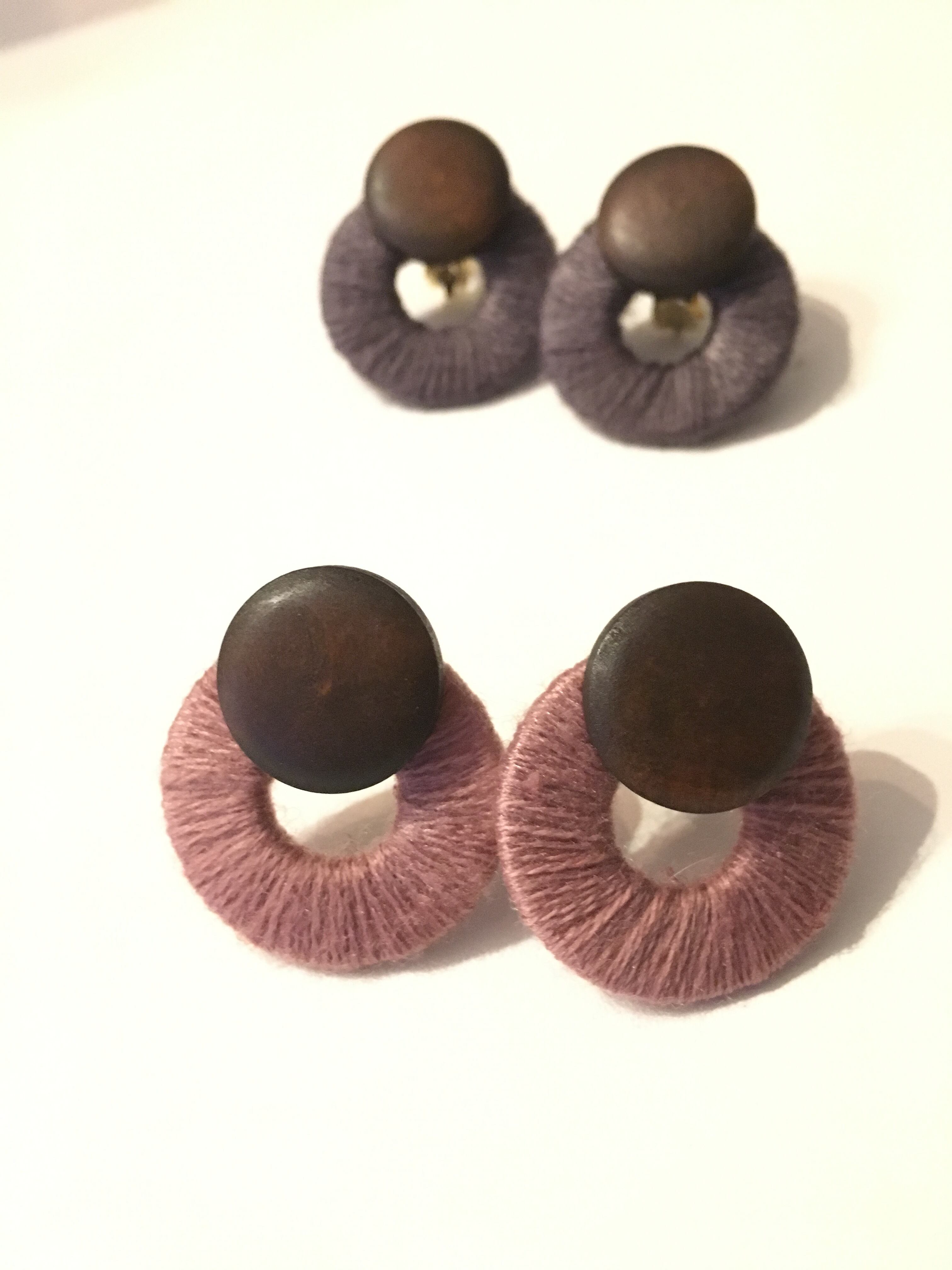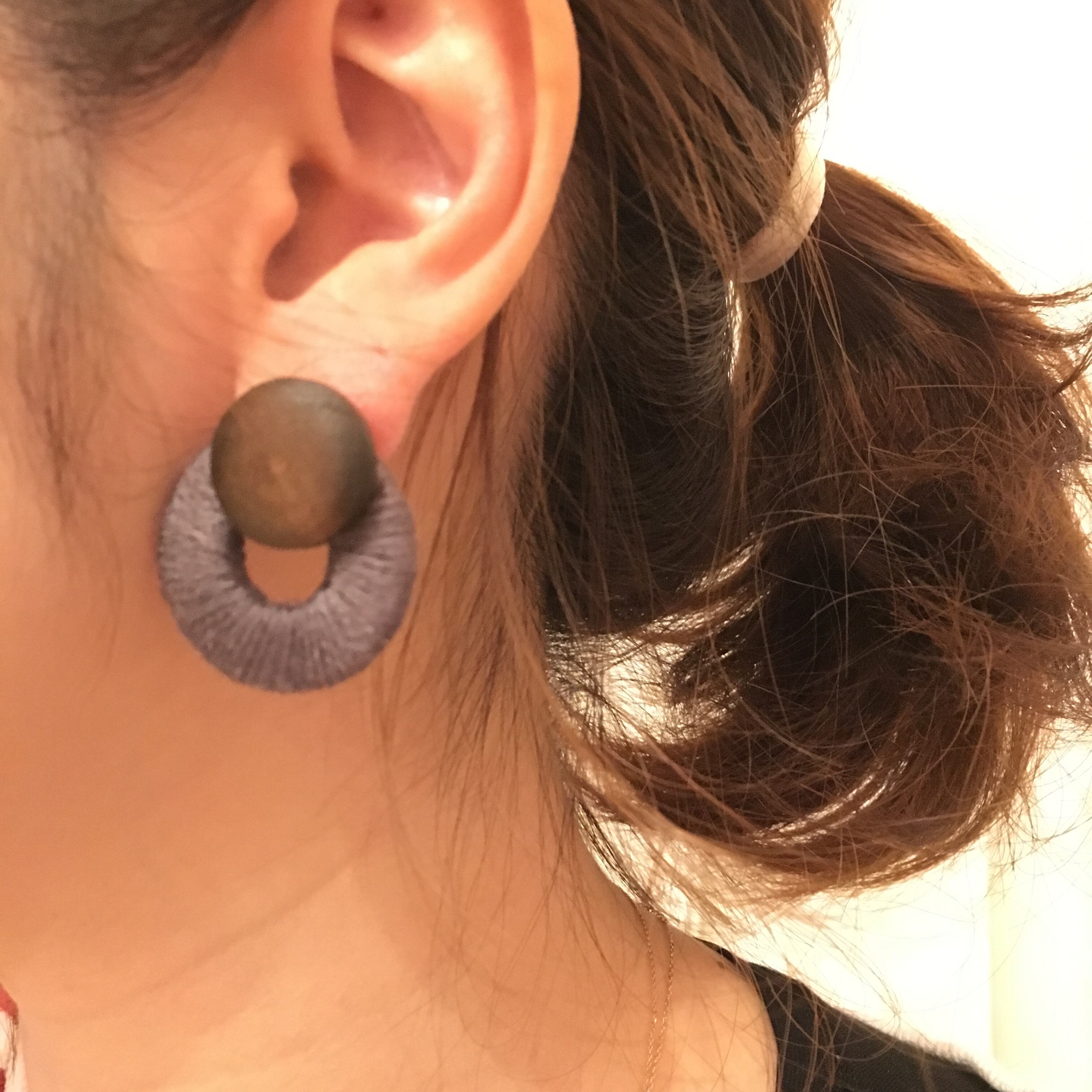 ナチュラルwoodとラウンドパーツイヤリング