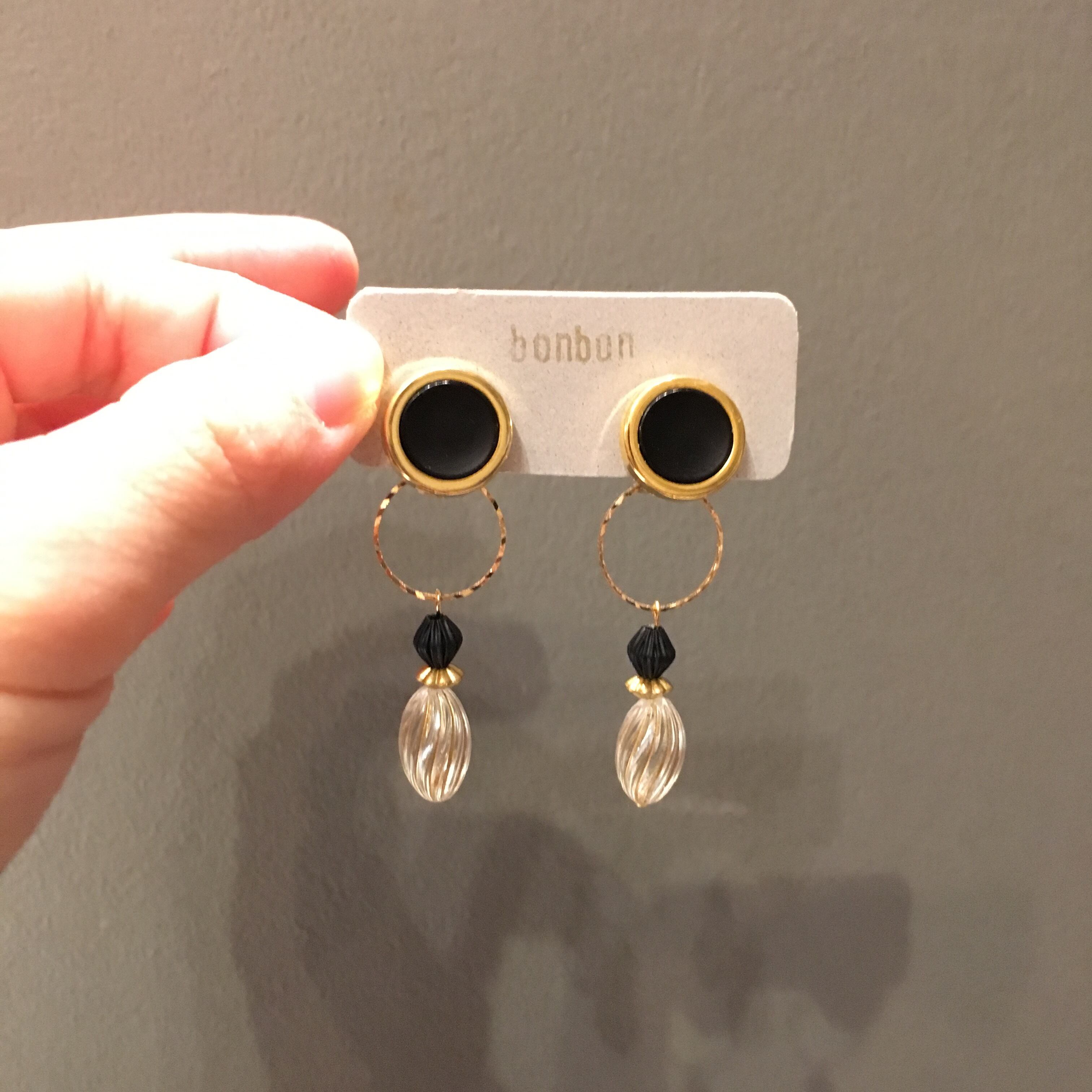 フランスビンテージボタンを使ったイヤリングになります。