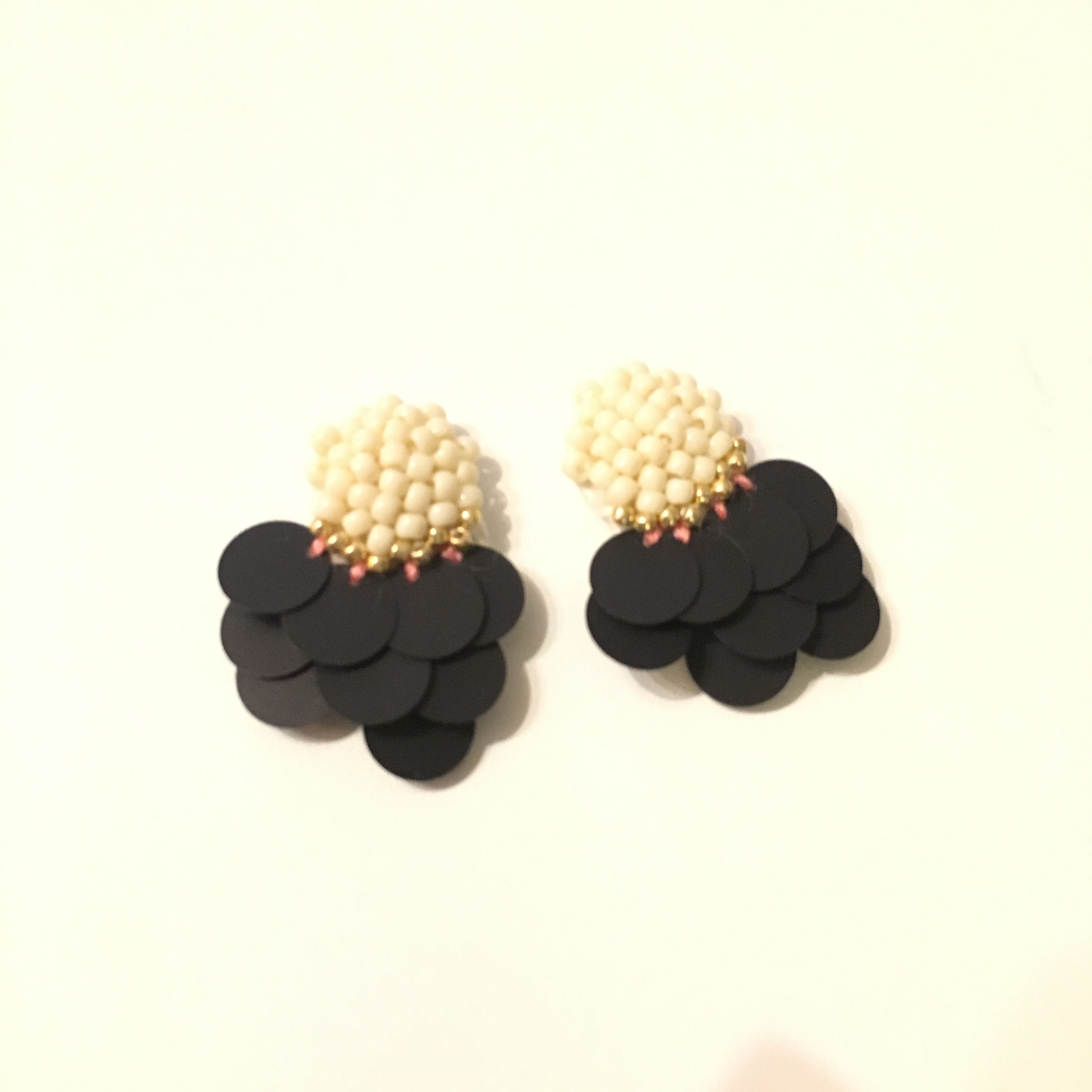 ビーズとスパンコールを使ったハンドメイドのイヤリングです♪(ブラック)