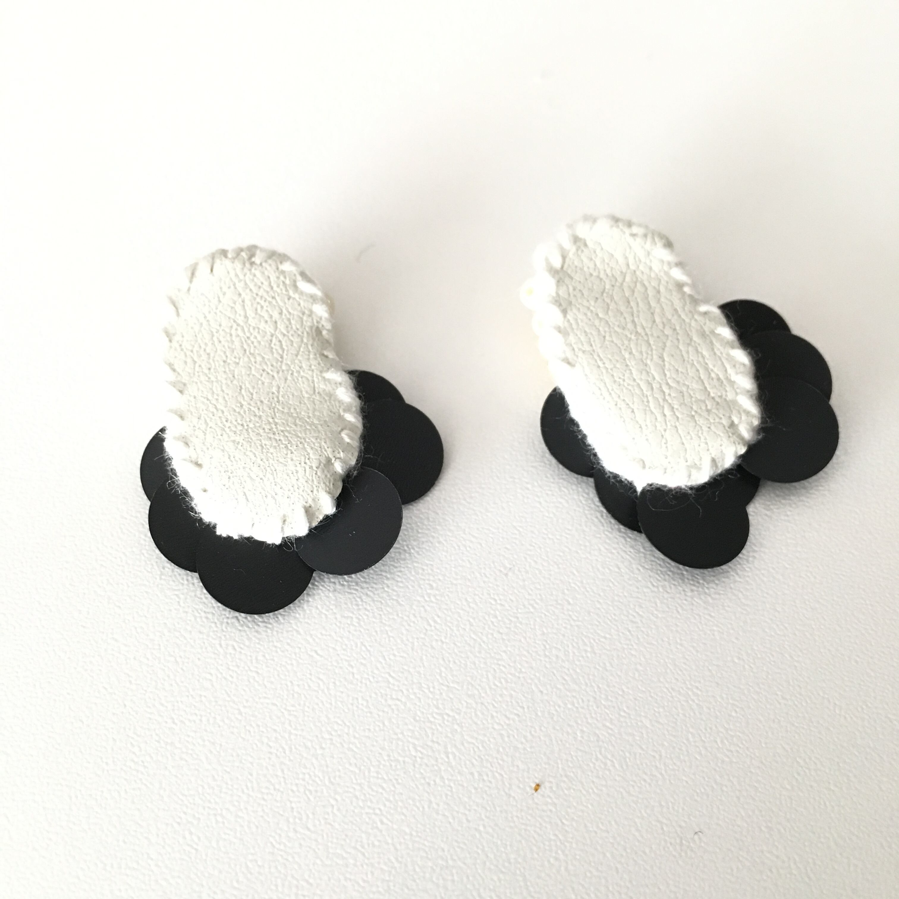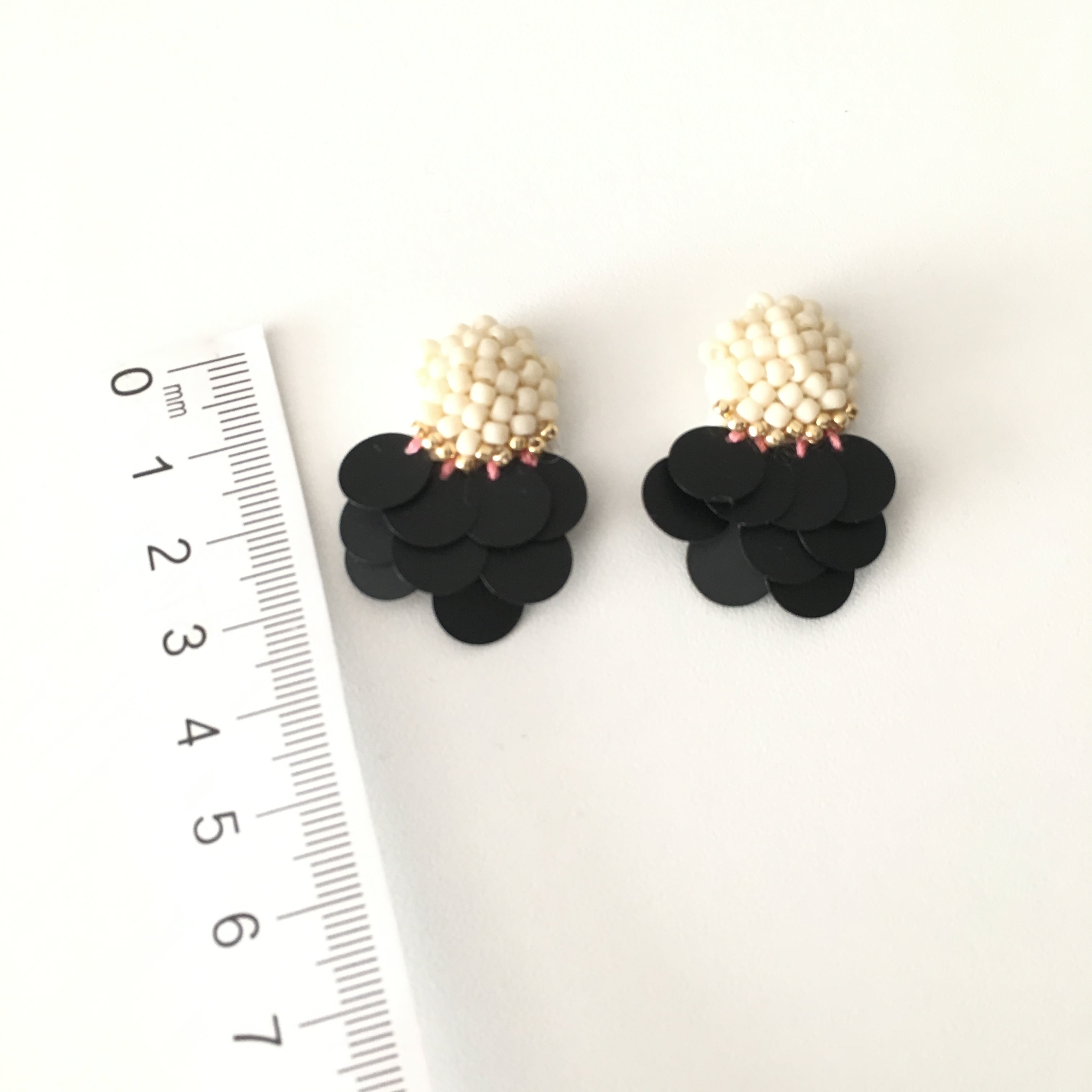 ビーズとスパンコールの刺繍イヤリング(ブラック)