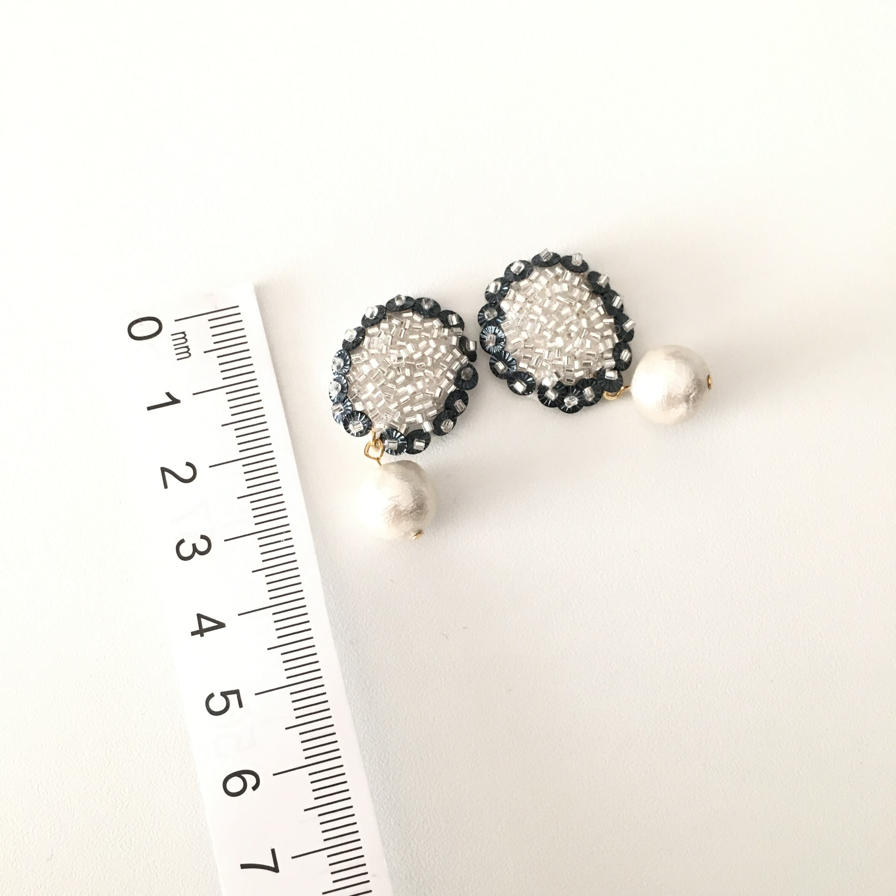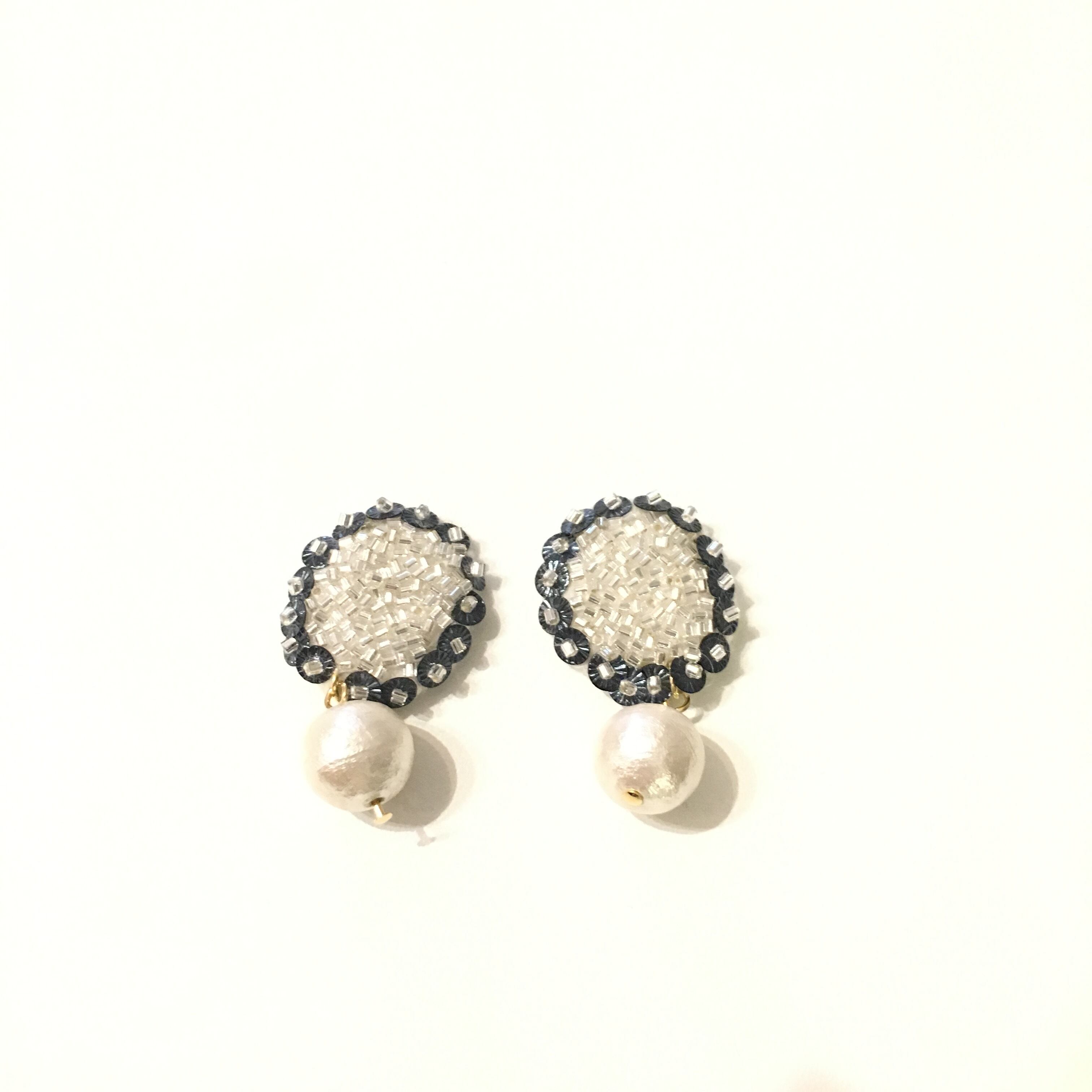 スパンコールとビーズ刺繍のイヤリング