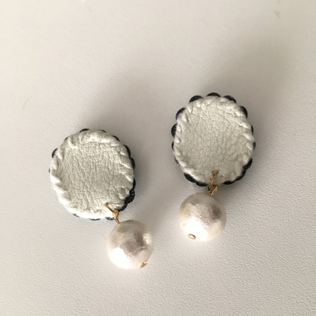 フランス製のビーズとスパンコールを使った作品です。細かなビーズのキラメキとコットンパールが揺らめき、とても素敵です。