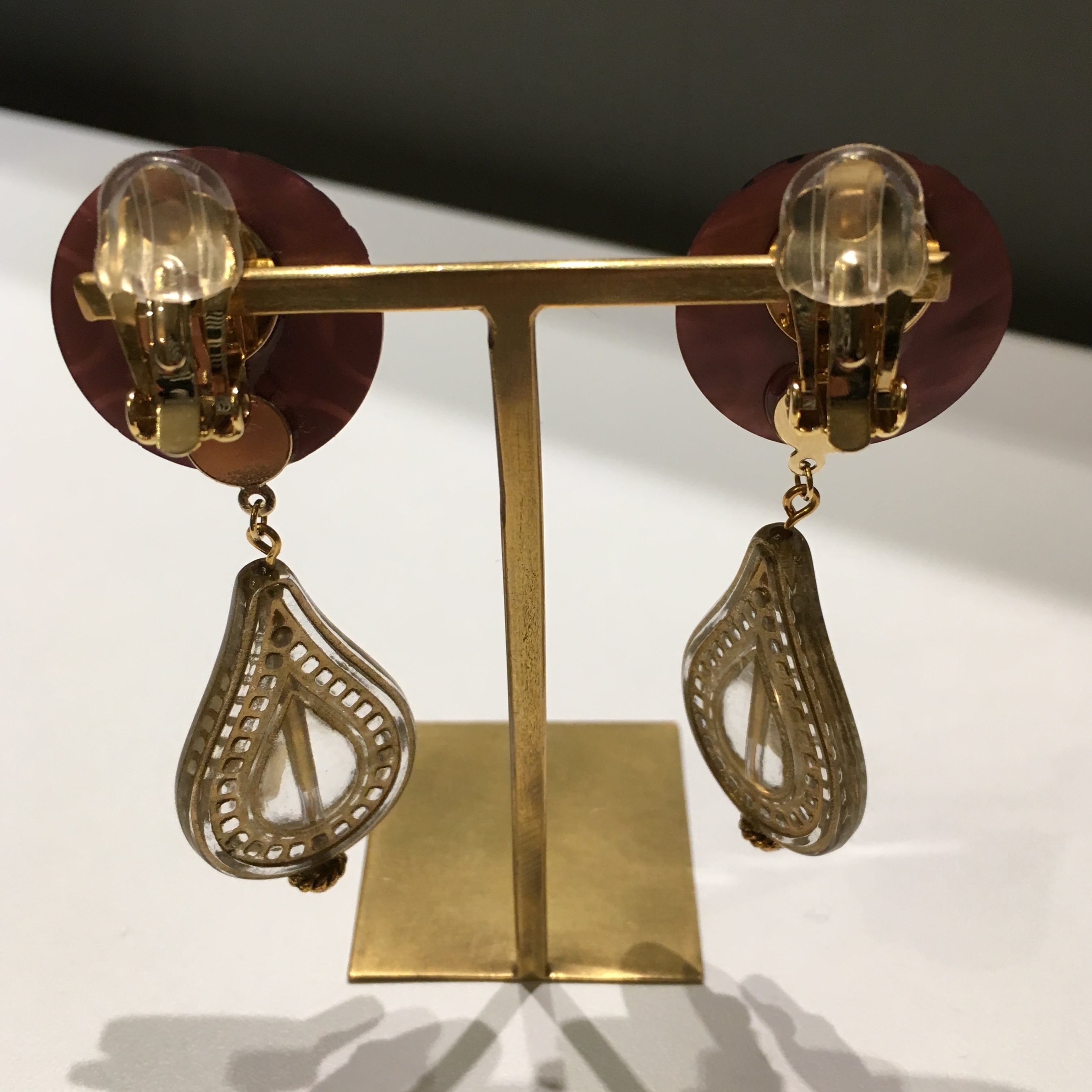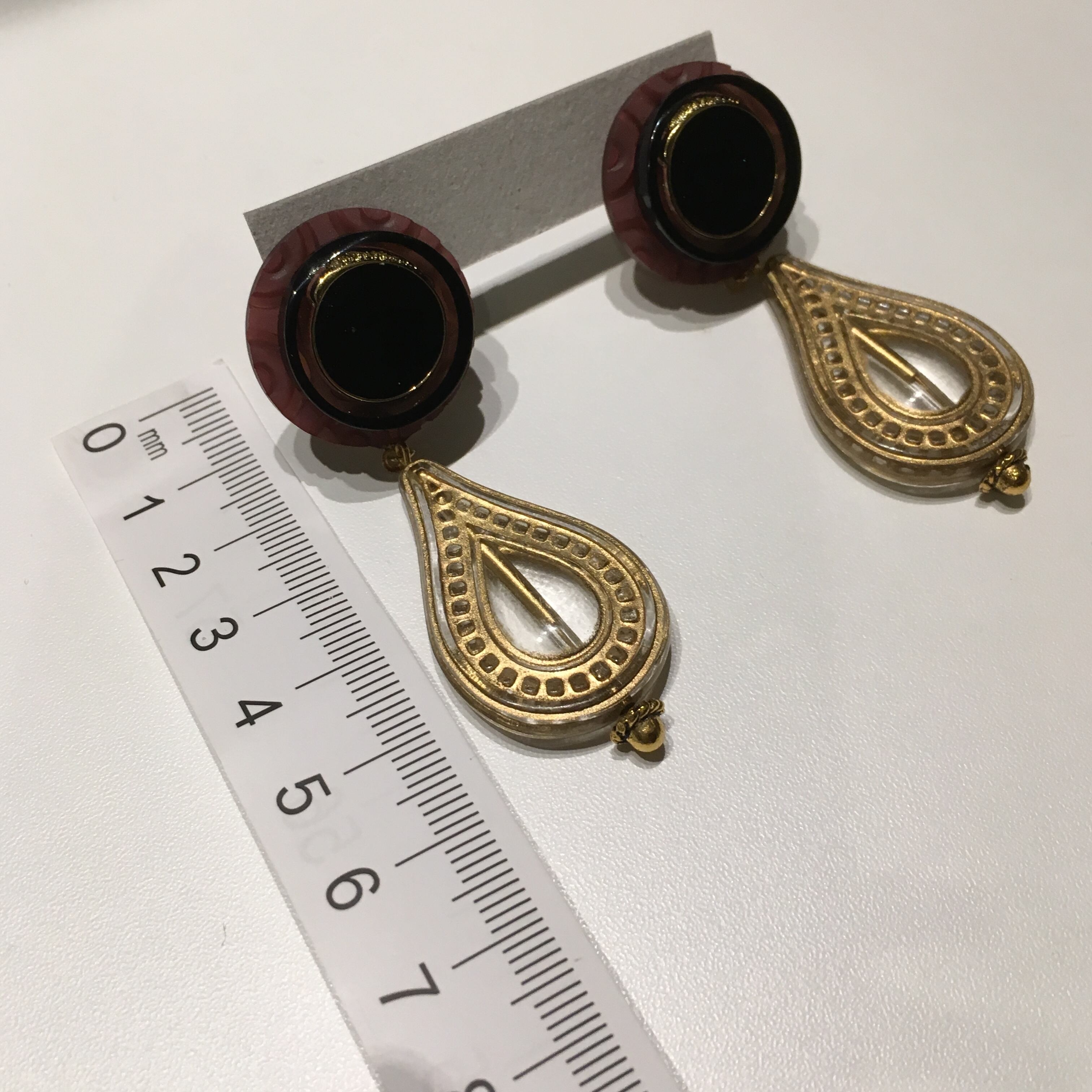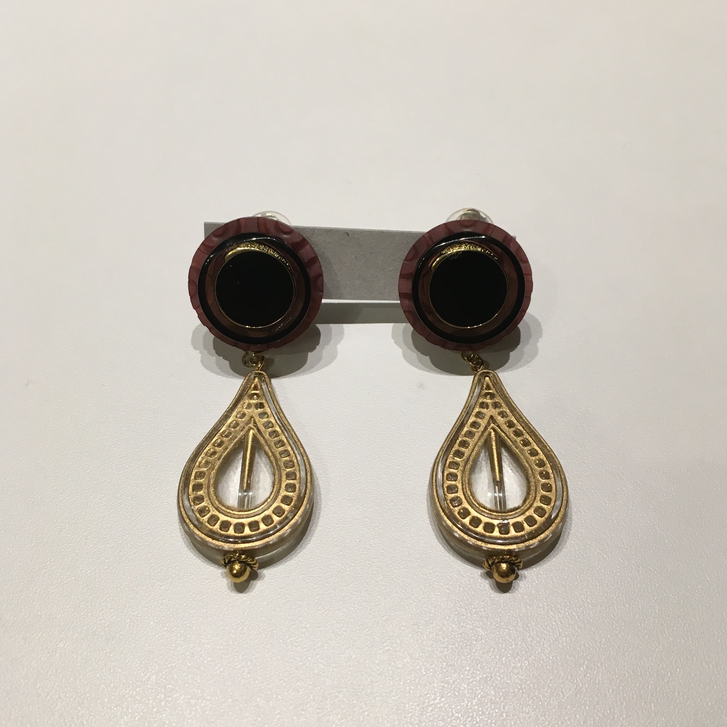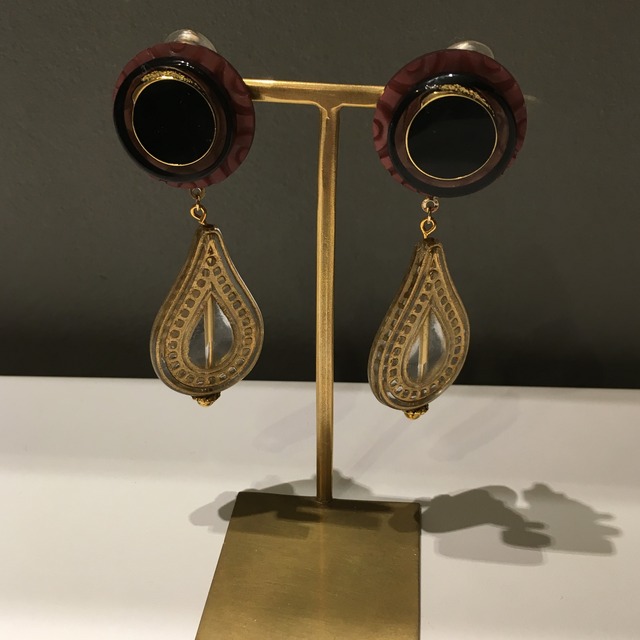 レトロボタンにオリエンタルな雰囲気のチャームを取り付けました。存在感抜群のボリュームイヤリングです♪