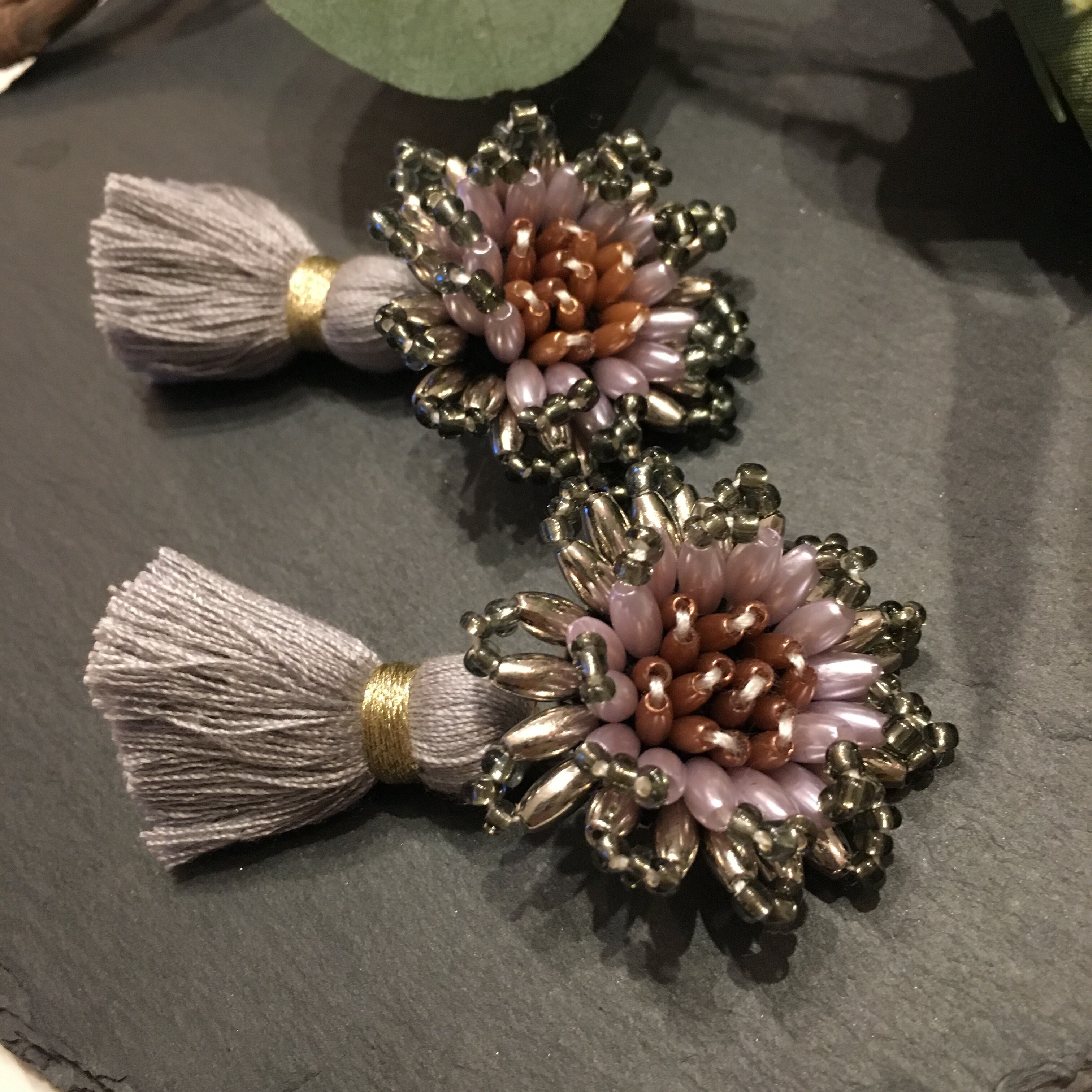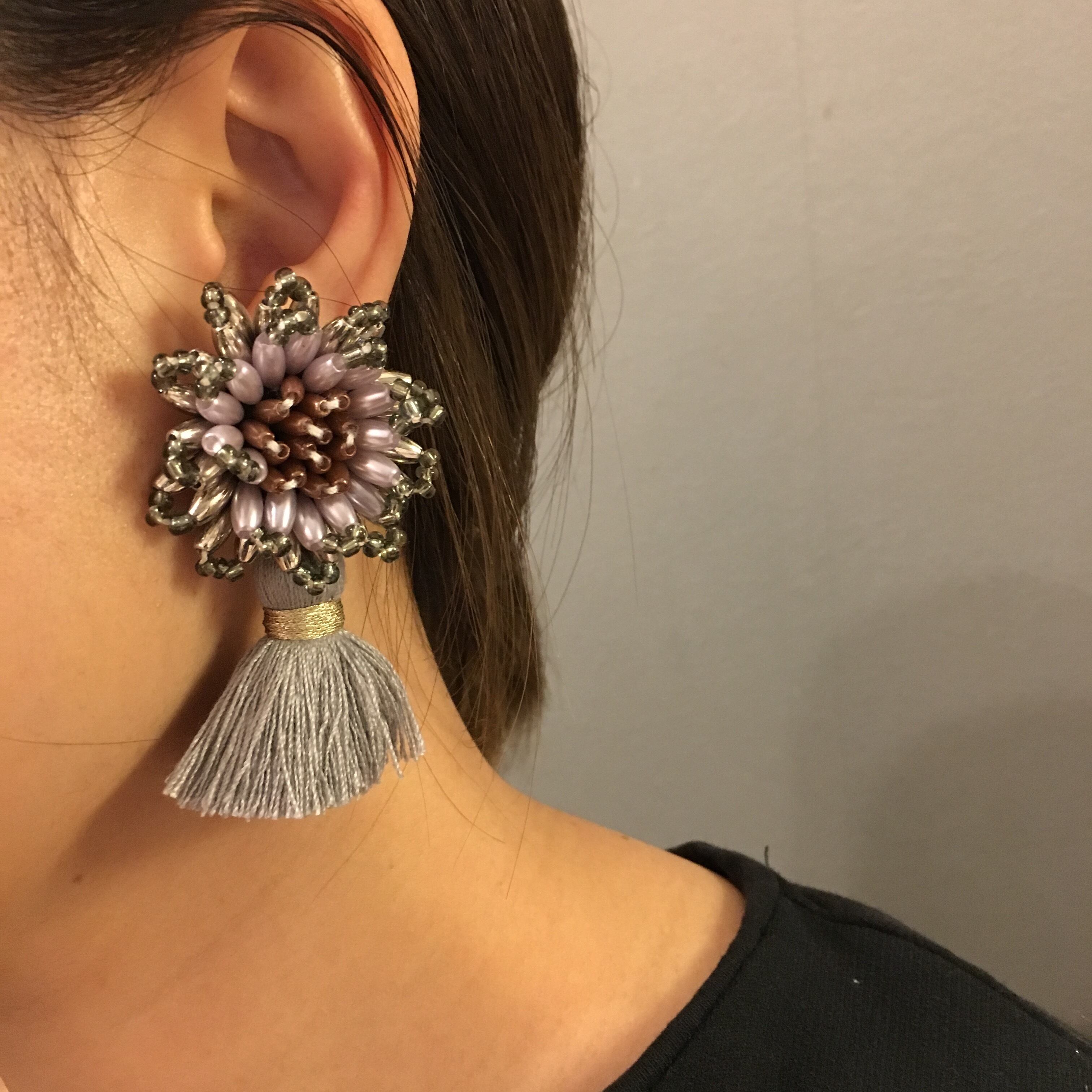 大振りなビーズフラワーとぷっくりとしたタッセルが素敵なアイテムです。落ち着いた色目でパーティーシーンはもちろん、デイリーユースにも。 ※ピアスについてはタッセルが取り外し可能なので、2wayでお楽しみ頂けます。 ※handmade ですので左右の個体差があります。 ご理解頂ける方のみ、ご購入下さいませ。 ♦︎ご購入にあたっては必ずSHOP情報をご覧下さい。