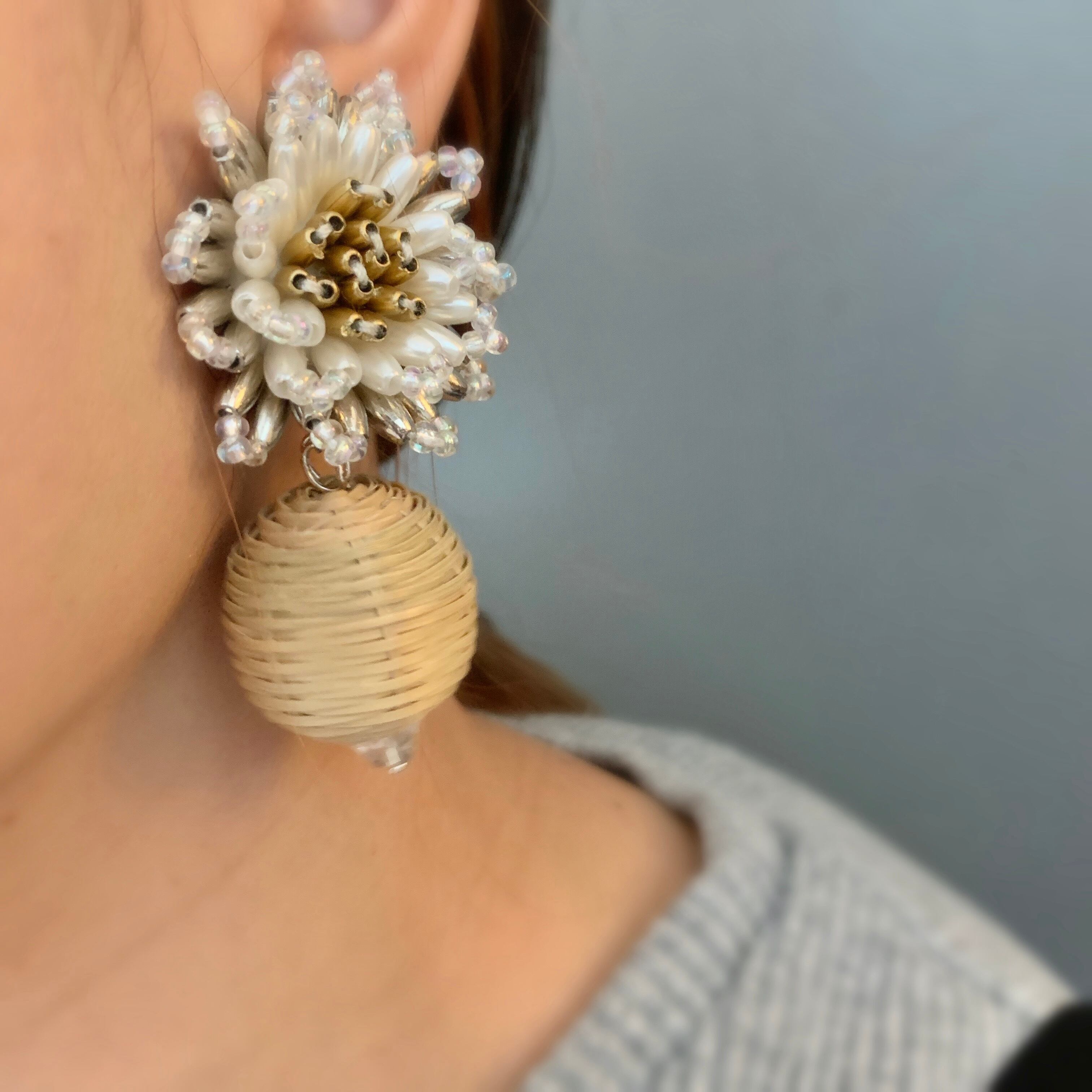 とっても可愛い大振りイヤリング♡ ※ホワイトは売り切れました。 ※handmade ですので左右の個体差があります。 ご理解頂ける方のみ、ご購入下さいませ。 (イヤリングとフラワーパーツの接着部分に接着剤を多目につけています。ご了承下さい。) ♦︎ご購入にあたっては必ずSHOP情報をご覧下さい。