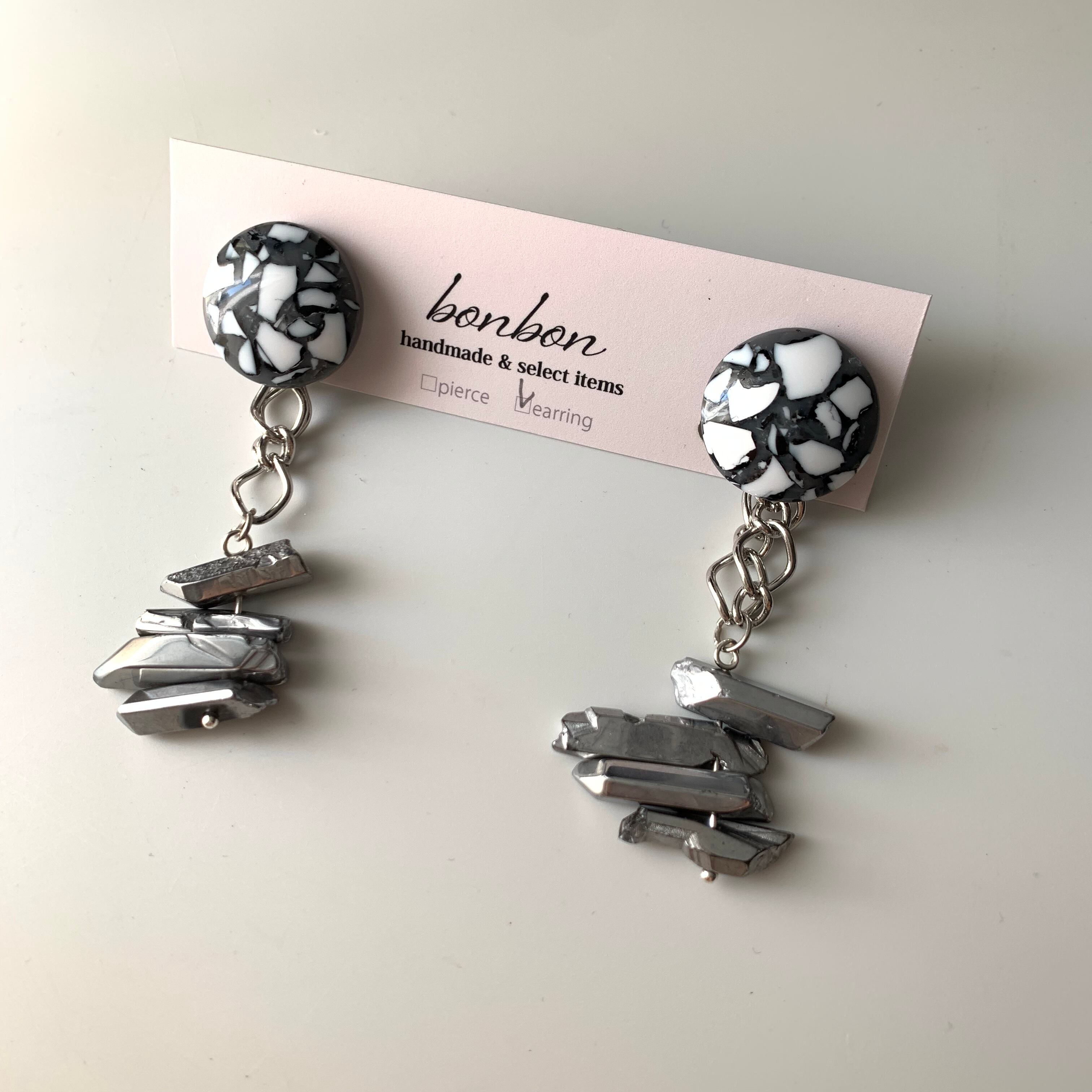 天然水晶にシルバーメッキが施されたビーズを使用して制作しました。天然の物なので一つ一つ印象が違いとても素敵です♪ ※天然のものでできていますので、傷、ヒビなどある場合がございます。予めご了承ください。 ※こちらはhandmadeの商品になります。ご購入の際は必ずSHOP情報をご覧下さい。