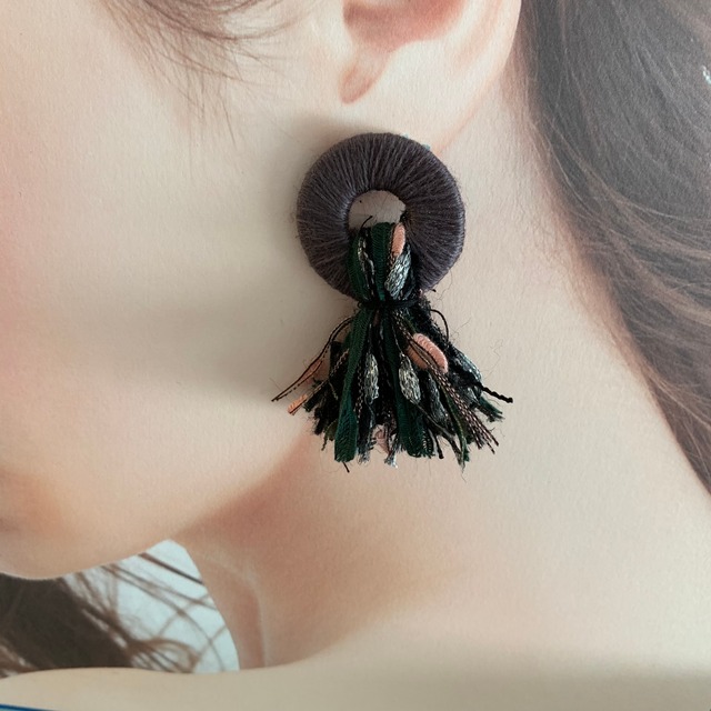 手染め糸、変わり糸、アヴリル、ファンシーヤーンなどを1つにしたタッセルピアスorイヤリングです♪ size 横約3.5㎝ 縦約6㎝ ※こちらはhandmade作品です。 ひとつひとつ丁寧に作業をしておりますが、糸に継ぎ目があるものや、たるみが生じる場合がございます。 handmadeにご理解頂ける方のみご購入下さい。 尚、ご購入の際はSHOP情報を必ずご覧下さいませ。