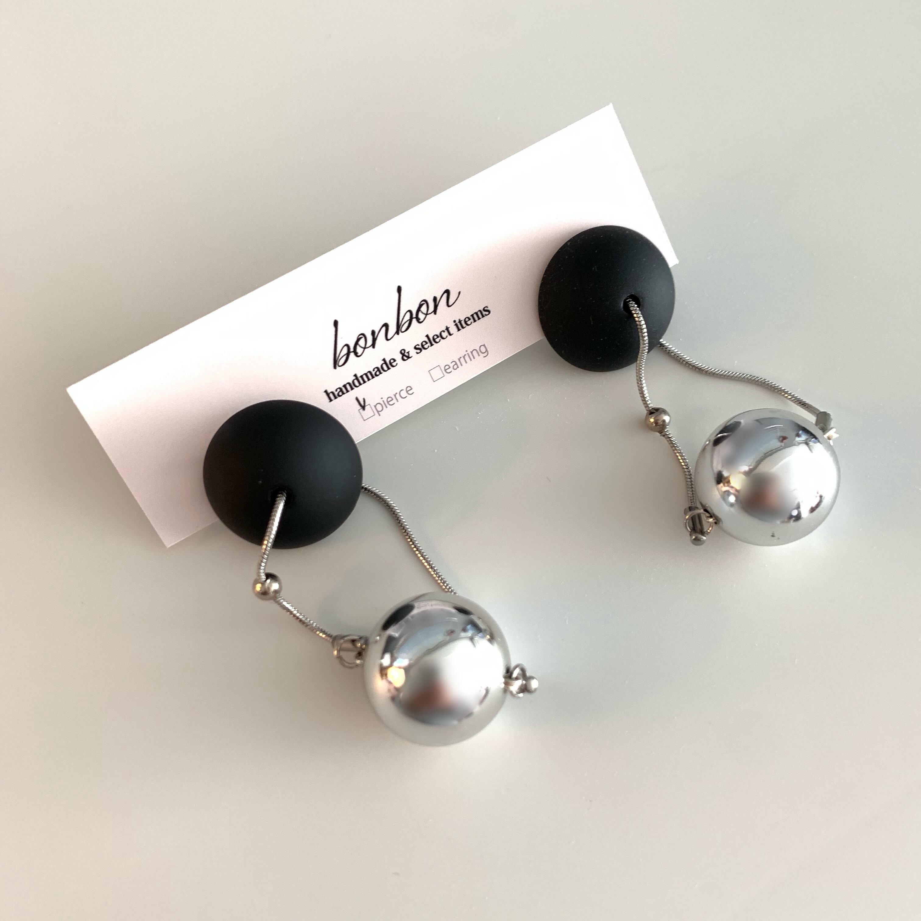 シルバーボールとスネイクチェーンを使ったシンプルながらも目を惹くアイテムです♪ピアスorイヤリングどちらも対応可能です^ ^ size 横約2.5㎝ 縦約7㎝ ※こちらの商品はhandmadeですので左右の個体差があります。ご理解頂ける方のみ、ご購入下さいませ。 尚、SHOP情報を必ずご覧下さいませ。