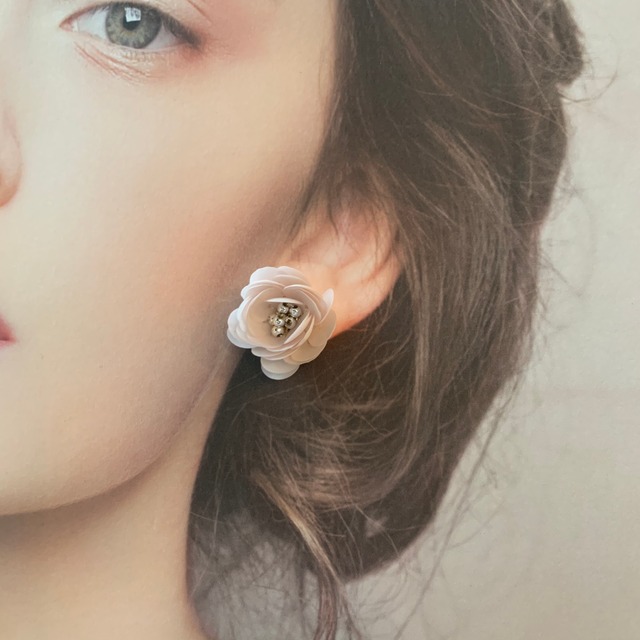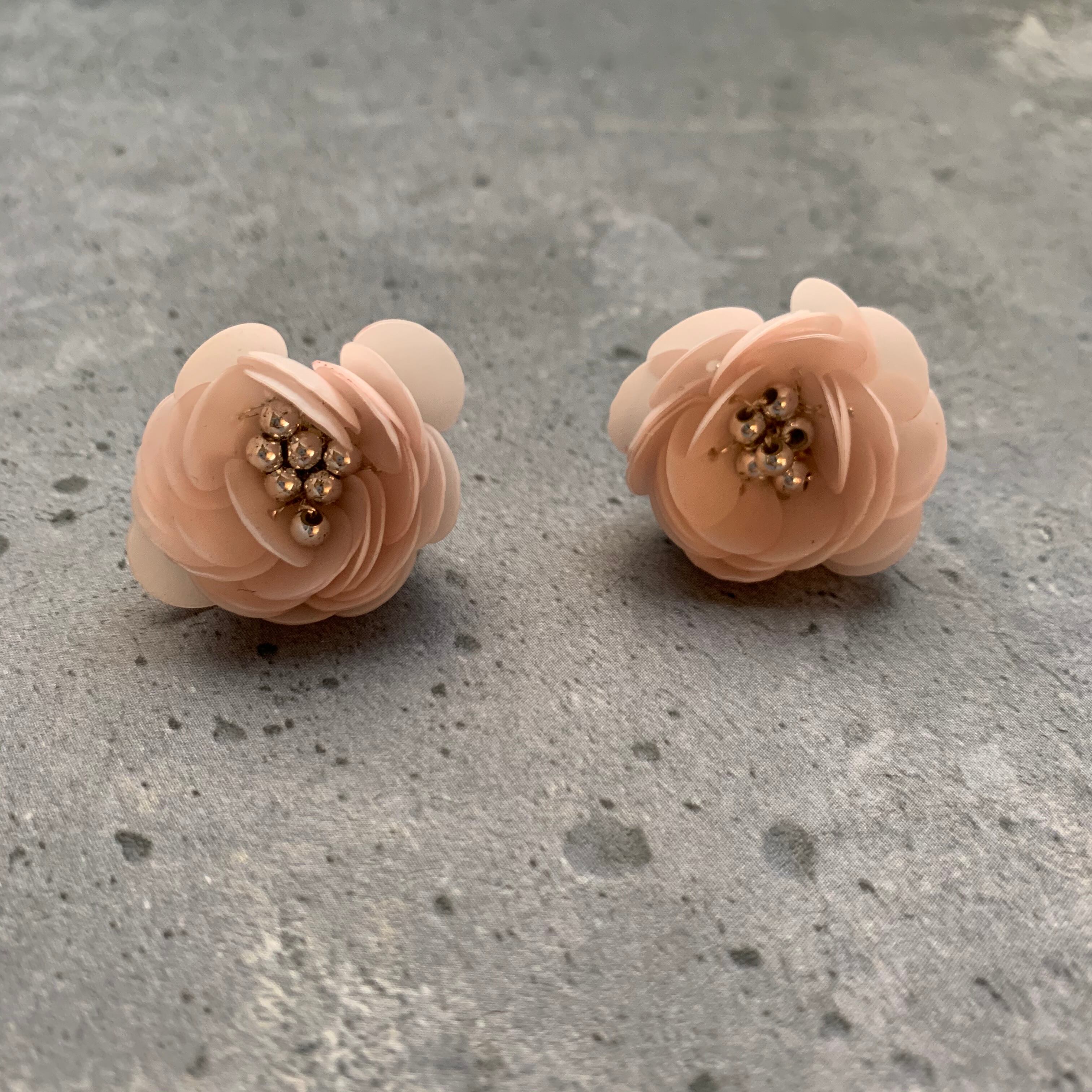 ビーズとスパンコールを一つ一つ縫い付け 可愛いお花に仕上げました オールシーズンご使用いただけます ※ピアス、イヤリングともに対応しております size 縦横2.5㎝ ※こちらはhandmadeの商品ですので左右の 個体差があります ご理解の上でご購入をお願い致します なお、ご購入の際はショップ情報を必ず ご覧くださいませ