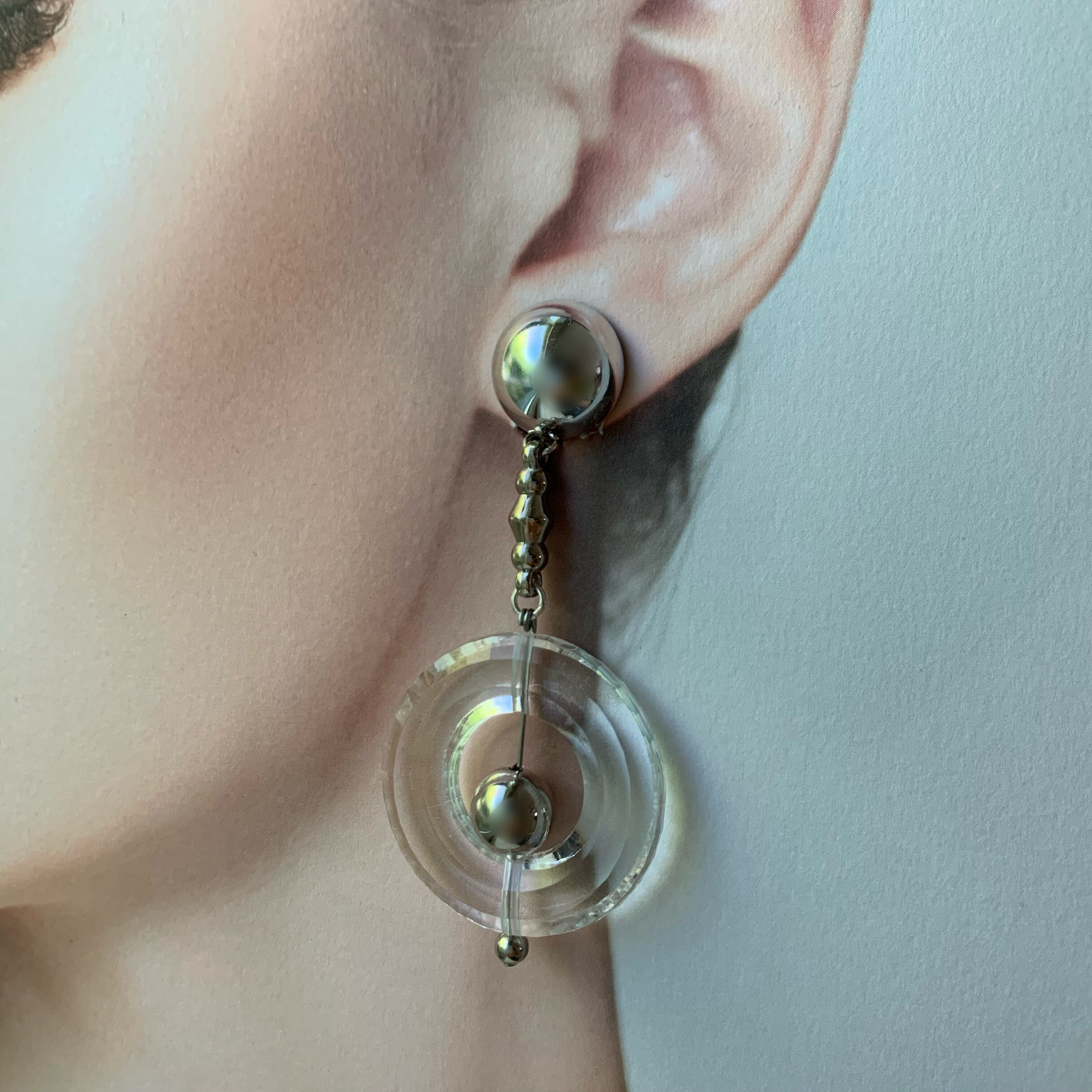 シルバーとクリアチャームで涼しげな印象で製作致しました つけ心地も軽くどんなカラーのファッションにも合わせいただきやすいアイテムです ※ピアス、イヤリングともに対応しております size 縦約7.5㎝ 横約3.5㎝ ※こちらはhandmadeの商品ですので左右の 個体差があります ご理解の上でご購入をお願い致します なお、ご購入の際はショップ情報を必ず ご覧くださいませ
