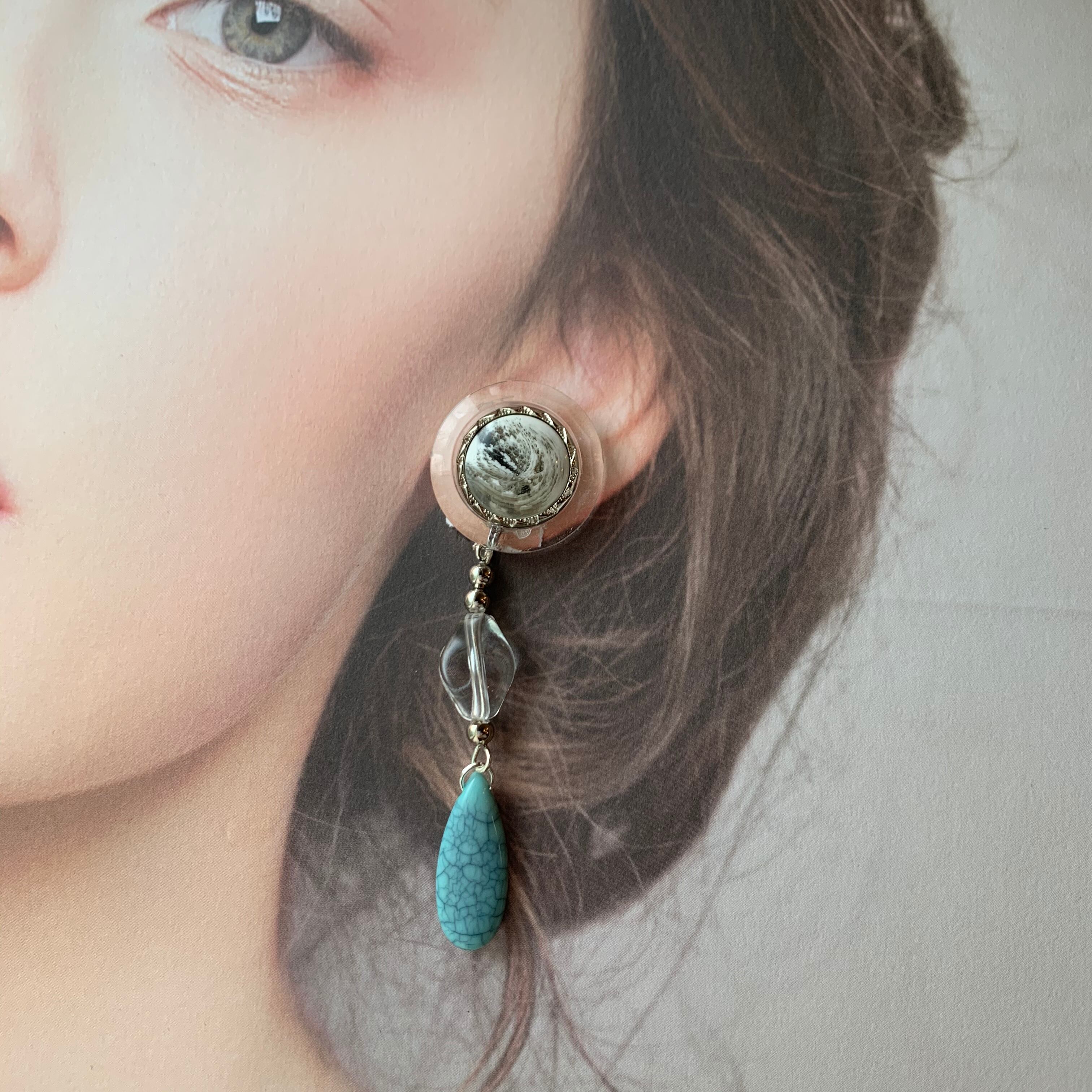 *イヤリングのみの取り扱いとなります size 縦約8㎝ 横約3㎝ ※こちらはhandmadeの商品ですので左右の 個体差があります ご理解の上でご購入をお願い致します なお、ご購入の際はショップ情報を必ず ご覧くださいませ