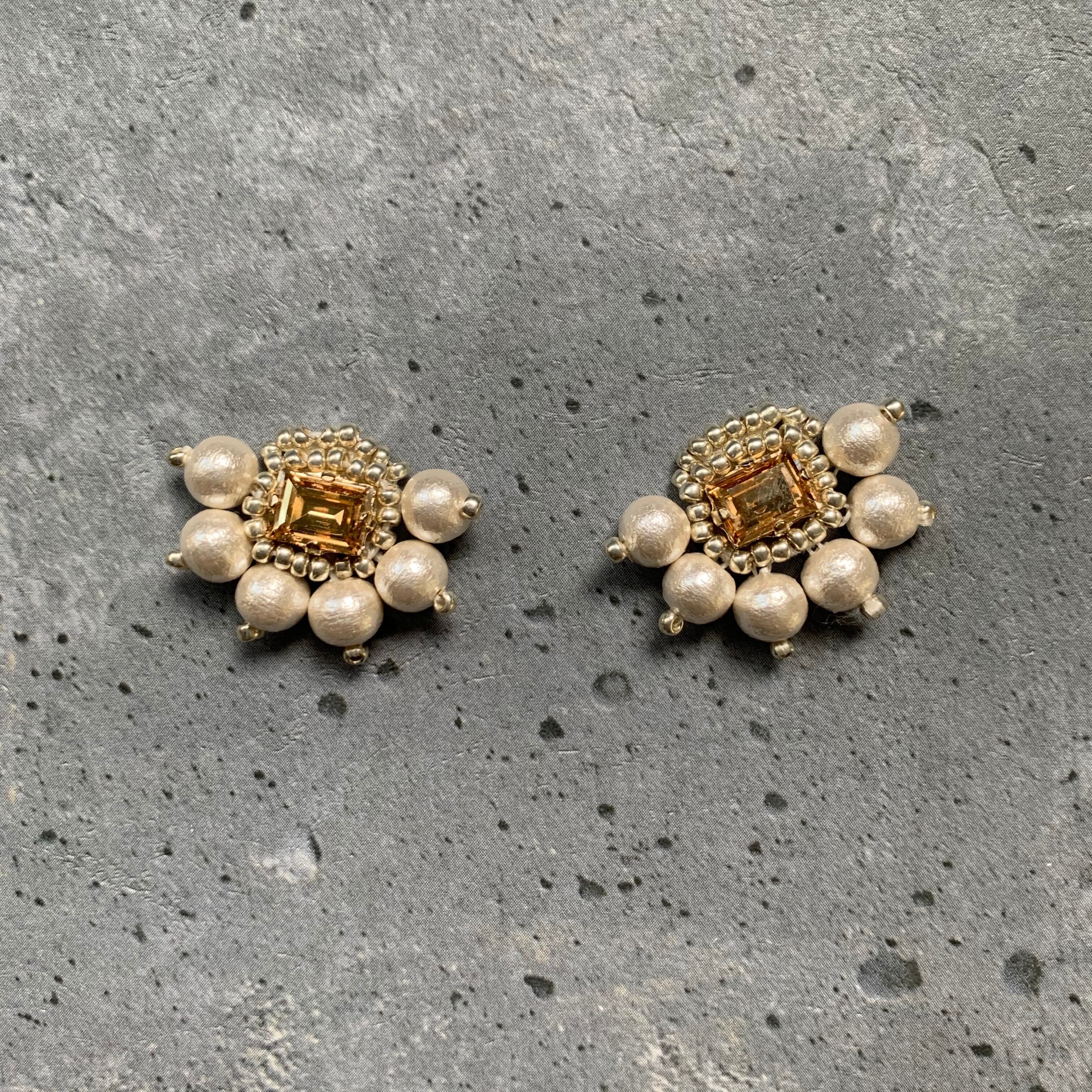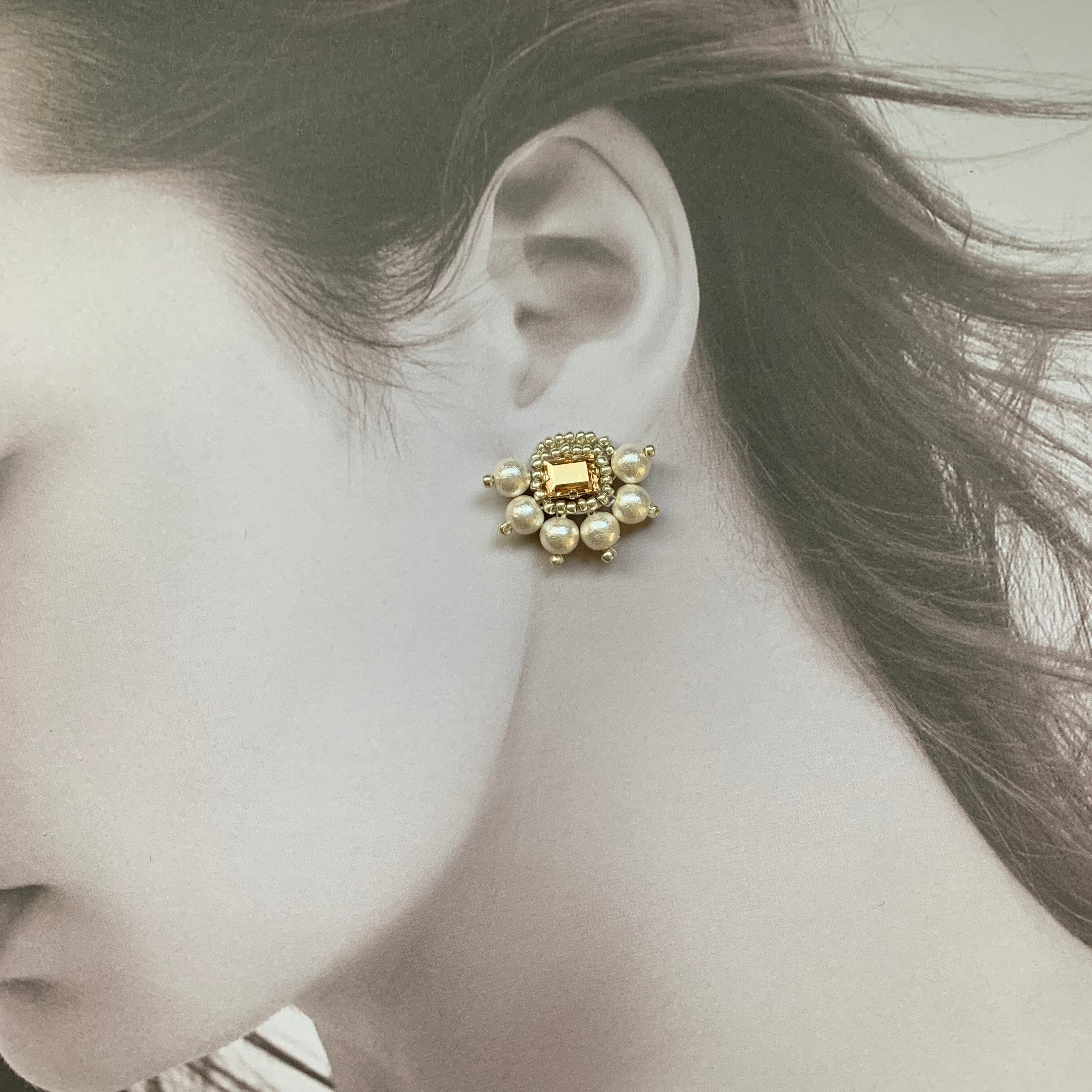 イヤリングは日本製の耳が痛くなりにくい シリコンカバー付きのクリップ式イヤリングを使用しています耳たぶを挟むクリップの角度が調節できます。