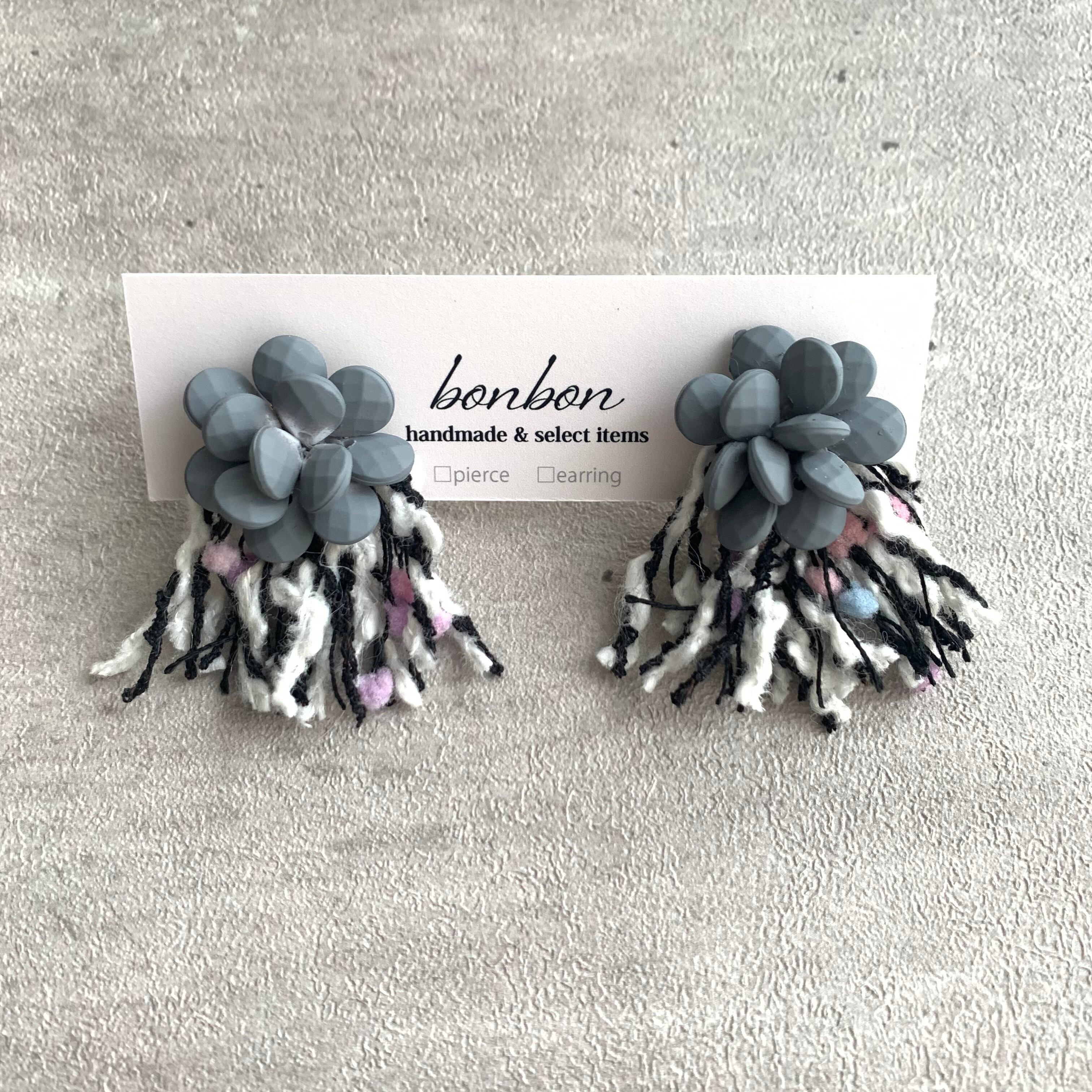 size: 横約2.5㎝(お花モチーフ) 縦約4㎝(フリンジ込み)